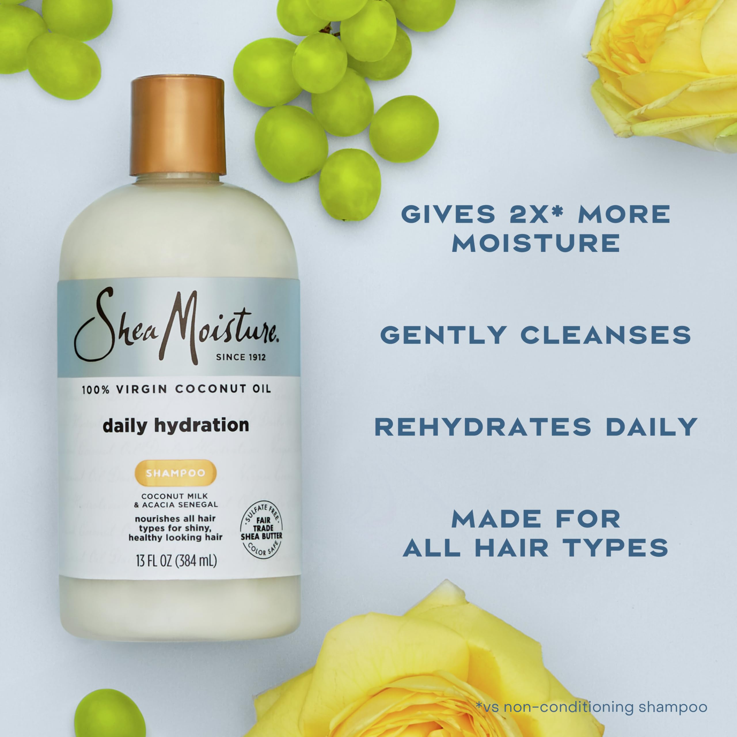 - The SheaMoisture Virgin Coconut Oil Daily Hydration Shampoo, now with a NEW & IMPROVED formula, gently cleanses with a creamy lather